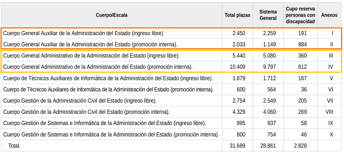 - 2.450 plazas para el Cuerpo General Auxiliar de la Administración del Estado (ingreso libre)